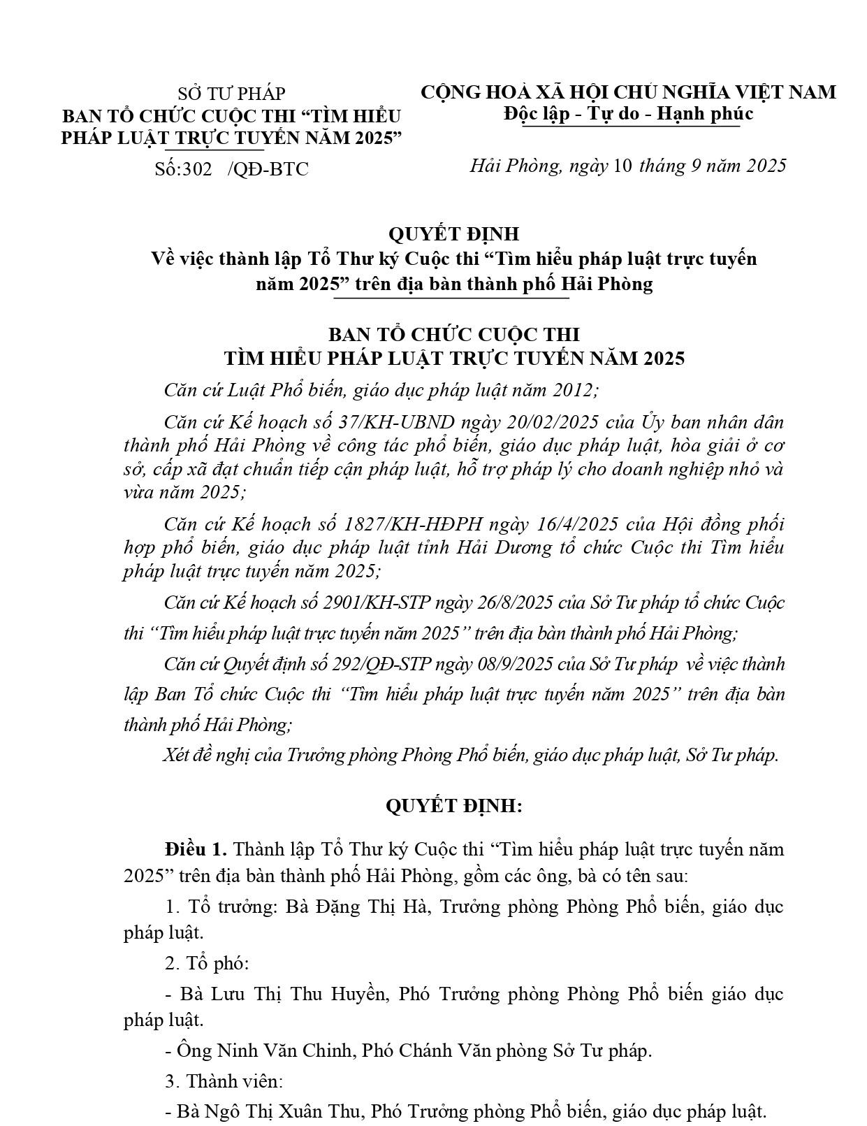 Quyết định thành lập Tổ thư ký