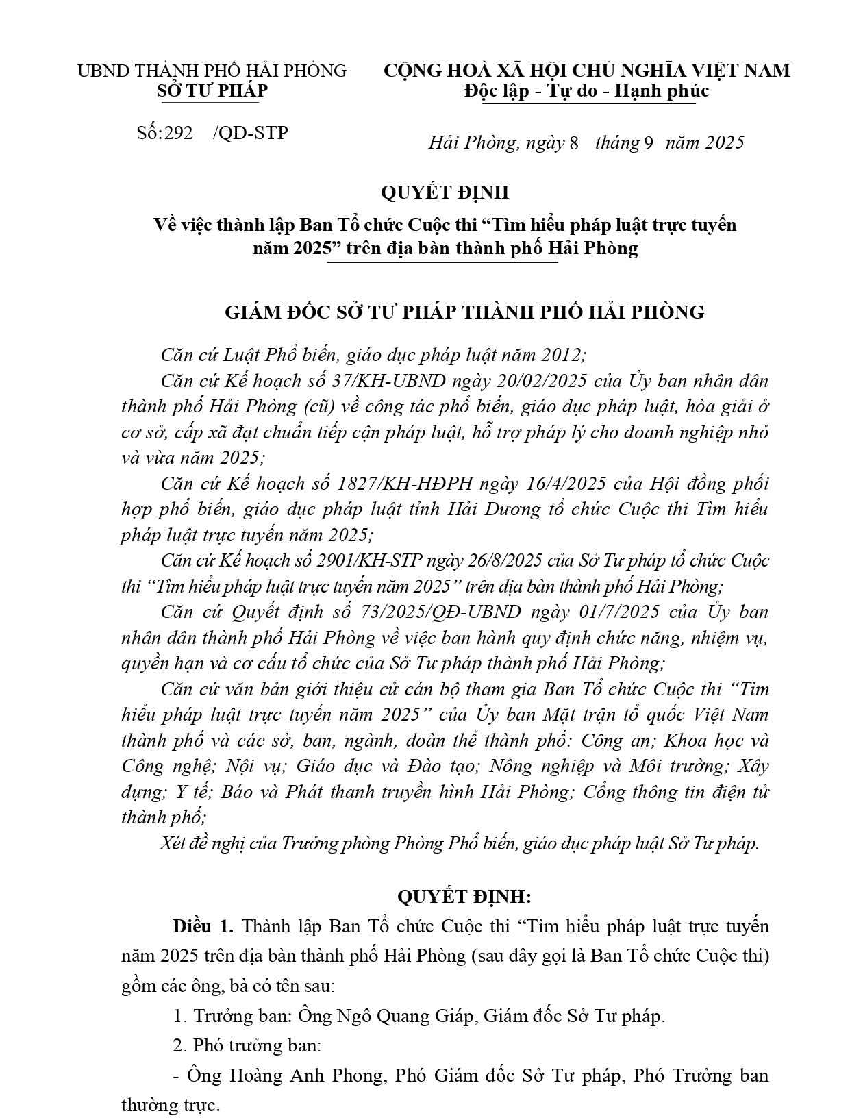 Quyết định thành lập Ban Tổ chức Cuộc thi