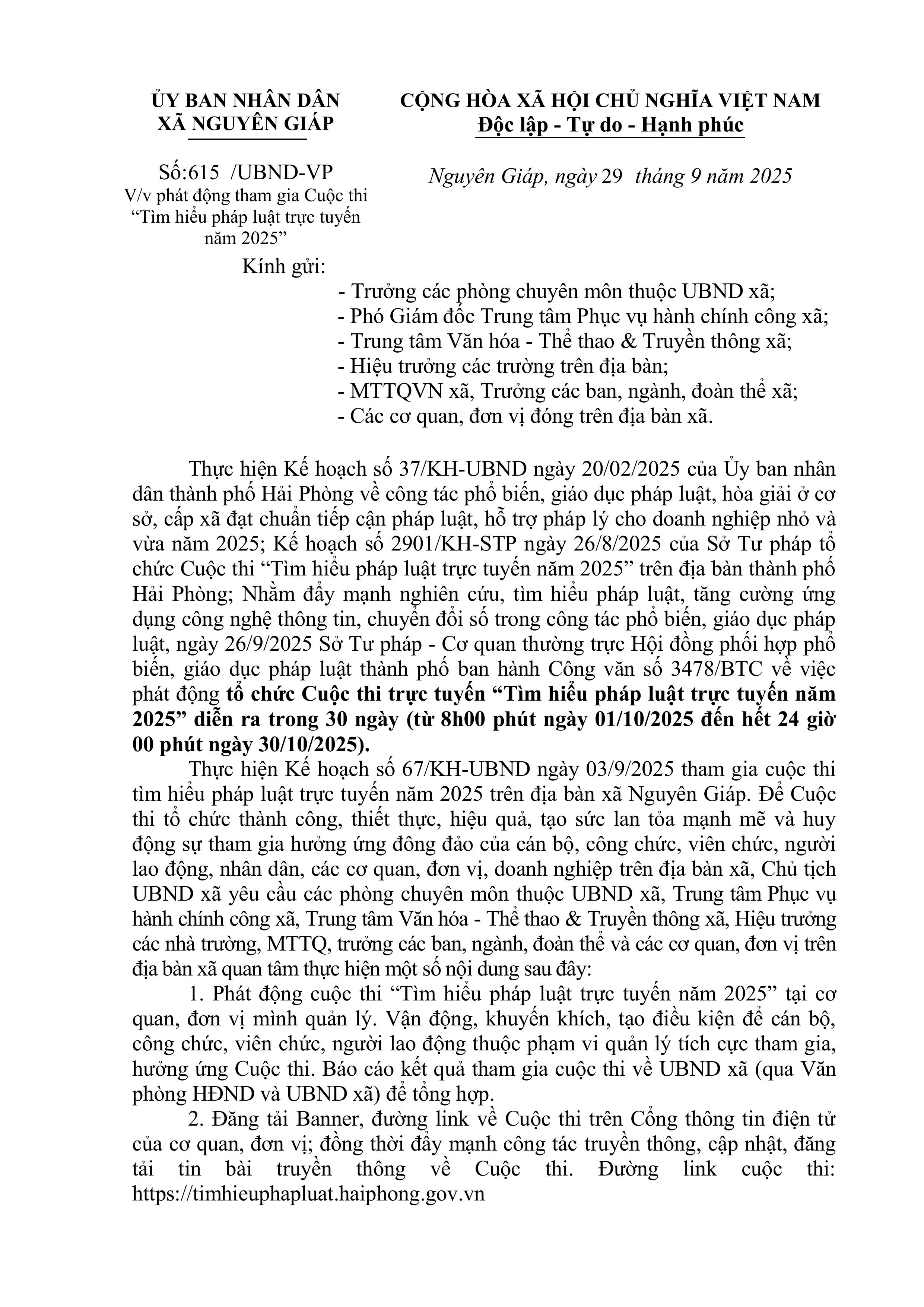Xã Nguyên Giáp phát động tham gia Cuộc thi “Tìm hiểu pháp luật trực tuyến năm 2025”